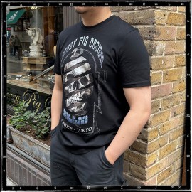 Introducing the newest Crazy Pig Designs T-Shirt! Bold and edgy, this statement piece features an unraveling ribbon revealing a strikingly realistic skull on the front —perfect for showcasing your rock n' roll style.