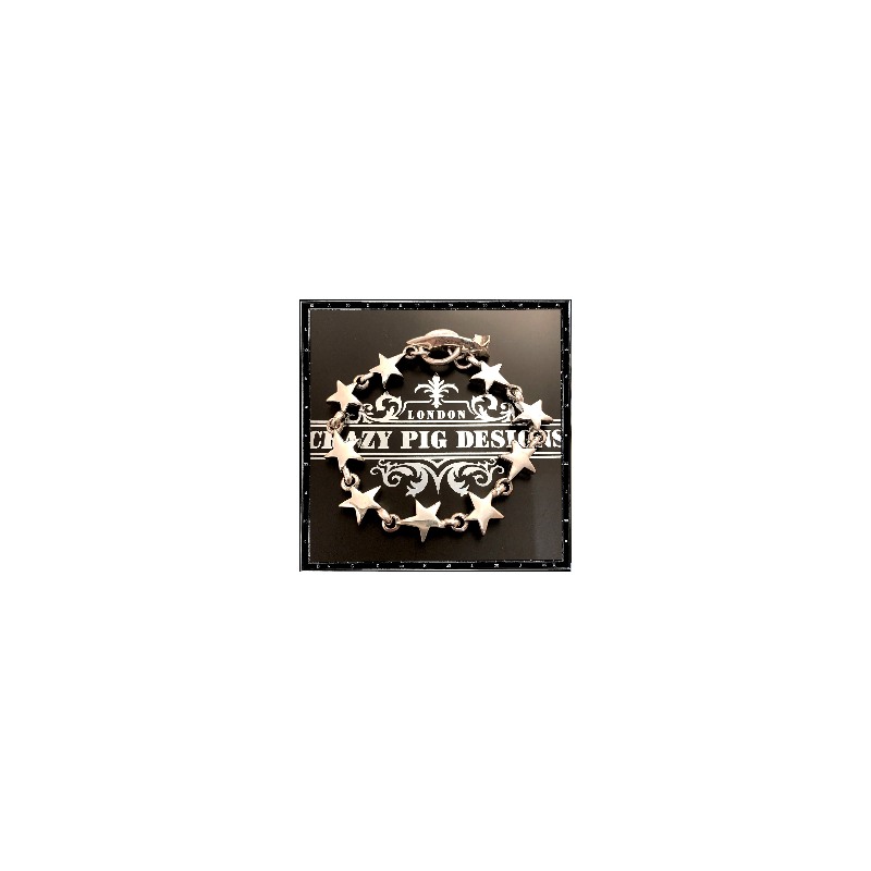 The star bracelet features a series of thick stars interlinked with silver hoops. This design achieves a high mirror polish on its entire smooth and sleek exterior which makes this luxury bracelet look and feel great on any wrist. It’s perfect for any stargazer or budding astronomers.